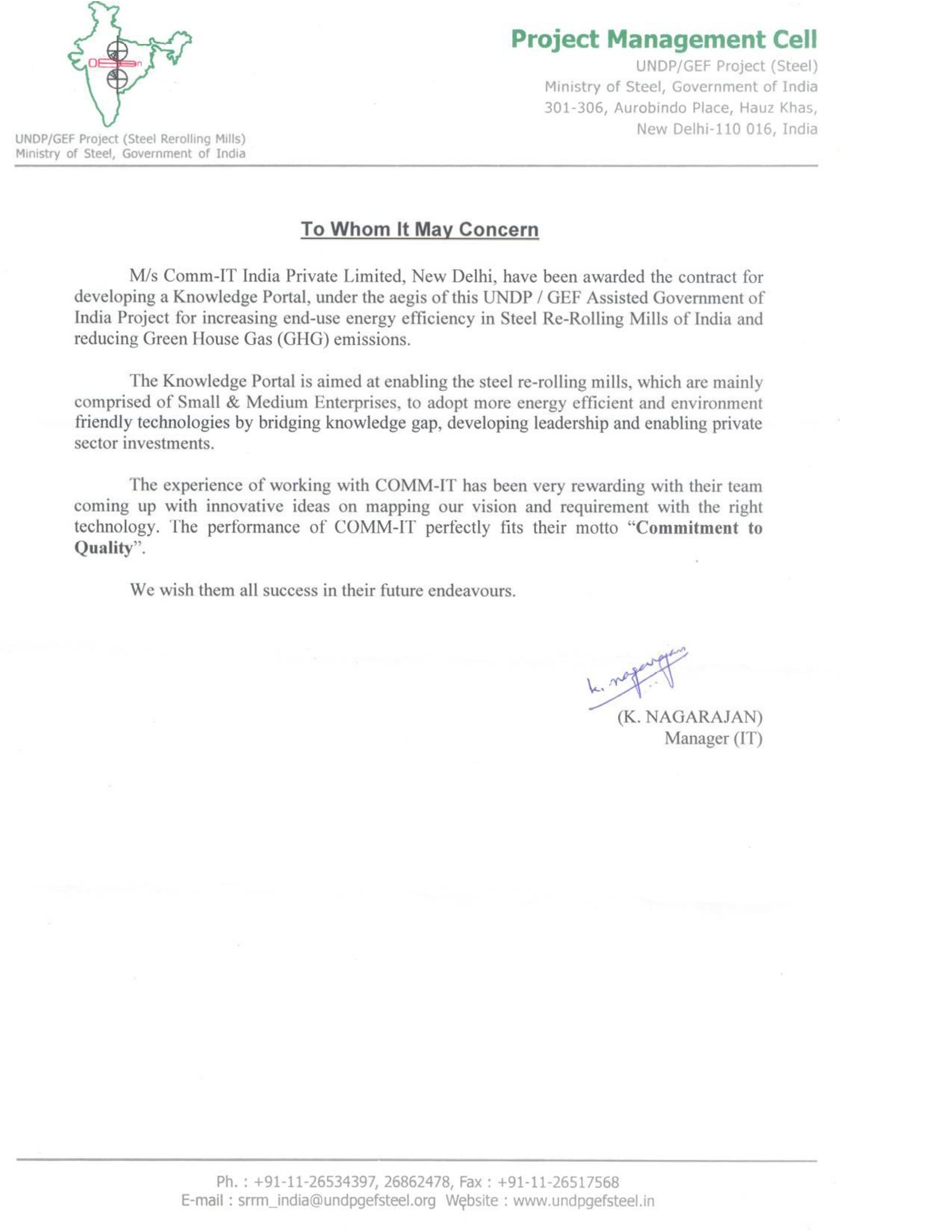 K. Nagarajan Manager (IT) UNDP/GEF Project (Steel) Ministry of Steel, Government of India