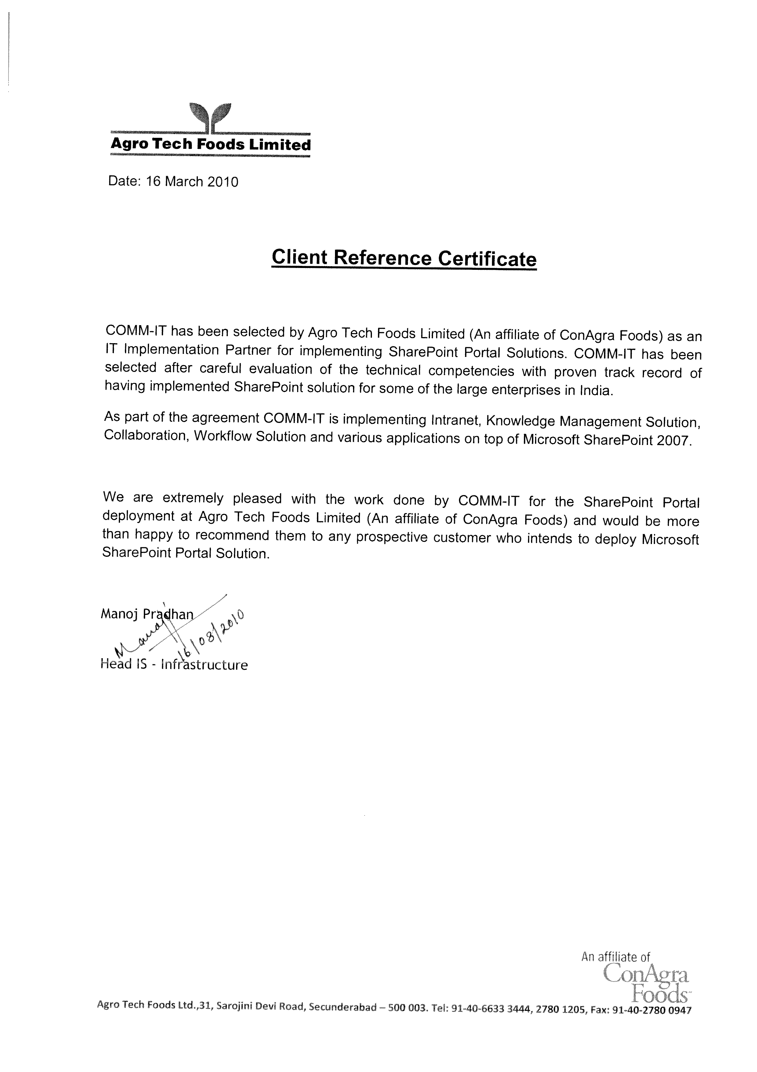 Manoj Pradhan, Head IS - Infrastructure, Agro Tech Foods Limited